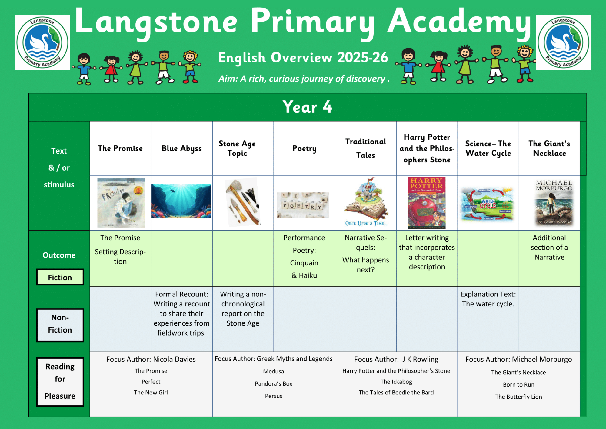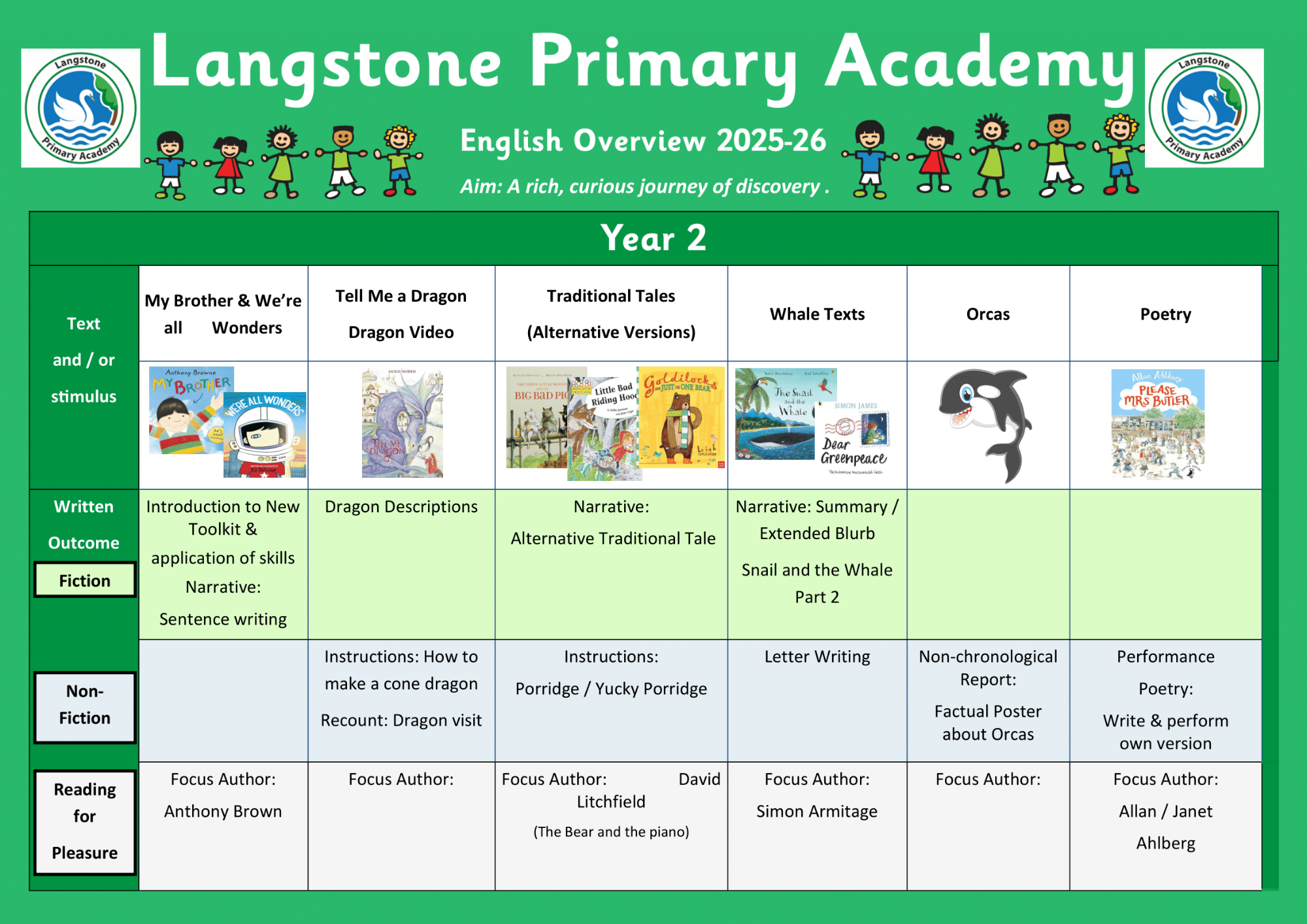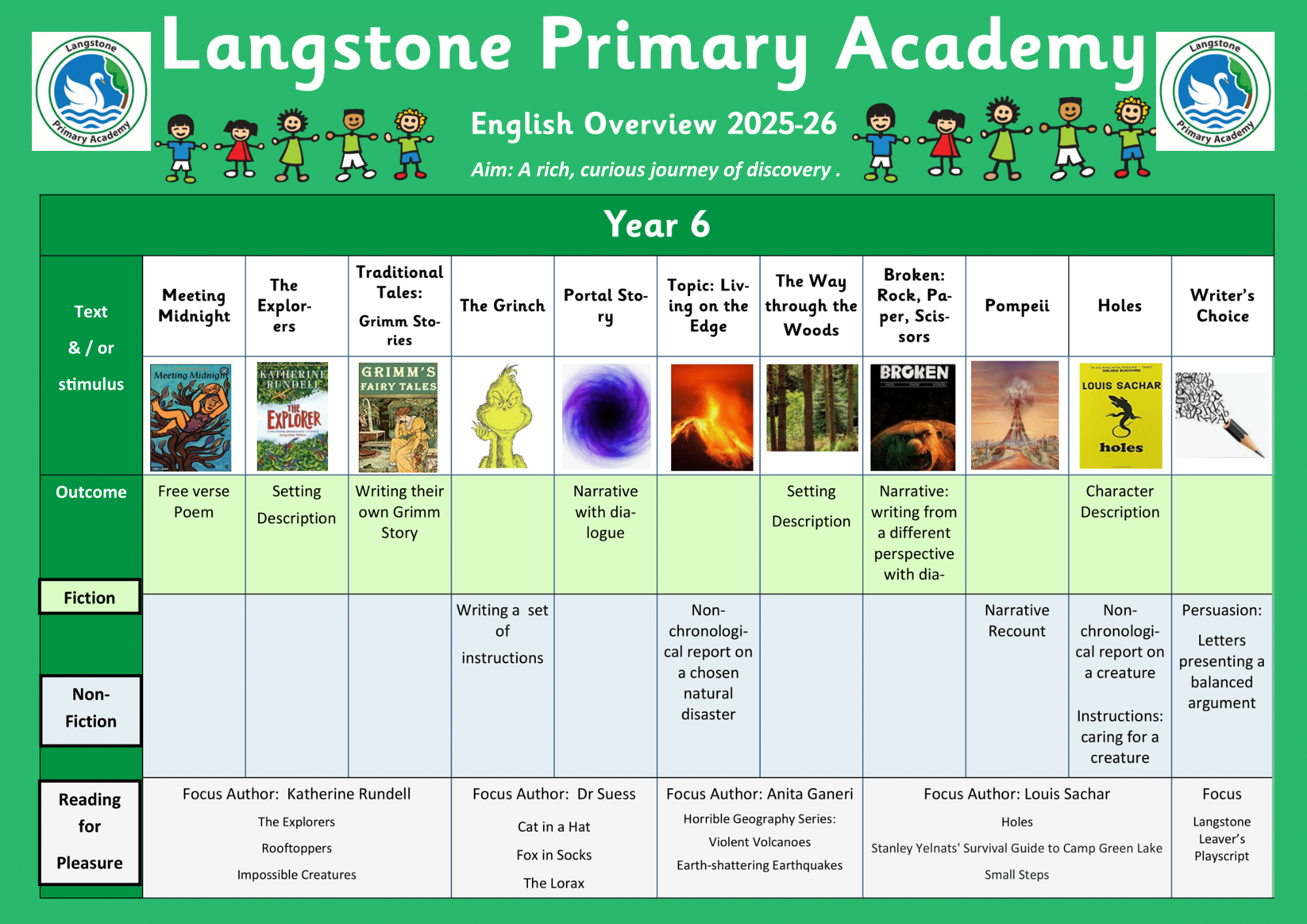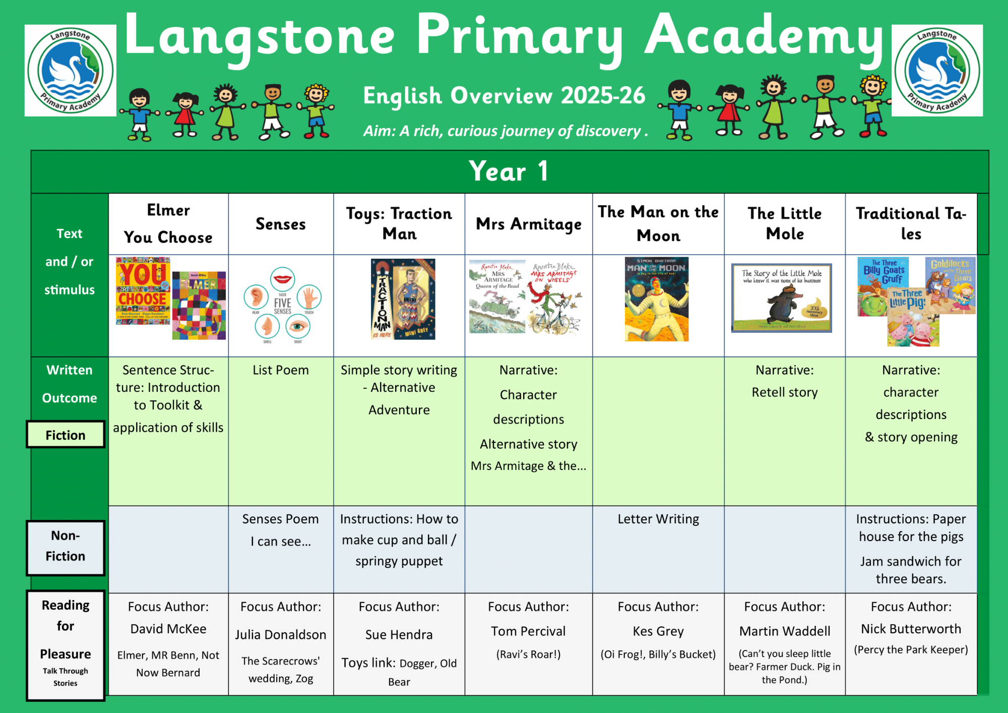 The National Curriculum underpins the aims of the English Curriculum at Langstone Academy.